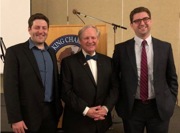 图丨 Rejuvenate Bio 两位创始人 Noah Davidsohn(左),Daniel Oliver(右)以及出现在狗狗展上的播音主持人 David Frei(中)。David 鼓励狗主人们为宠物抗衰老研究提供资助