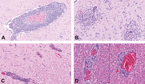 摘要:磷酸萘酚喹(NP)被认为是一种有前景的抗疟药物候选药物。雄性和雌性犬每天口服给药,NP为2, 10,或50毫克/千克/天,最多14天。NP在≥10mg/kg/d时不能耐受,在死亡状态下处死数只动物,在50mg/kg/d时有明显的神经学临床症状。显微观察剂量≥2mg/kg/d时主要为脑白质、灰质中枢神经系统血管中心性炎症(主要是淋巴细胞和巨噬细胞),≥10mg/kg/d时较低的脊髓发病率。在≥2mg/kg/d时,肝脏也观察到以小叶中心静脉为中心的血管中心显微变化。同等剂量雌性比雄性更敏感。综上所述,在本研究的条件下,通过每日口服灌胃NP达2周,犬不能耐受,导致死亡、显著的神经学临床体征以及中枢神经系统和肝脏的血管中心显微改变。关键词:萘酚喹 疟疾 恶性疟原虫 毒性 神经毒性 肝毒性 血管中心性炎症简介:NP在10和50mg/kg/d时不能耐受,50mg/kg/d时有明显的神经学临床症状,在≥10mg/kg/d时死亡,导致早期安乐死。此外,雌性剂量≥2mg/kg/d和雄性剂量≥10mg/kg/d均可引起中枢神经系统和肝血管中心性炎症。动物:开始给药时大约为14个月大,体重7.8至10.1公斤。赋形剂对照组(0mg/kg/天,1雌1雄)、低剂量组(2mg/kg/天,1雌1雄)和中剂量组(10mg/kg/天,1雌1雄),高剂量组(50mg/kg/天,2雌2雄)。剂量组在剂量的第一天错开,以最低剂量开始。对照组动物同时服用10 mg/kg/天.所有犬每天大约8:00给药,剂量为5毫升/千克。每日记录临床症状,并对所有动物进行每日两次(上午和下午)评估死亡率、异常和疼痛或窘迫征象。在第1, 4, 8天、11天和第15天对所有存活的犬记录体重。在1至4, 4天至8, 8至11天和11至15天(生存期)确定定量食物消耗。2只幸存的大剂量动物在非计划安乐死前3天进行了详细的观察、体重和食物消耗。第1, 4和13天,使用马甲遥测系统测心电图。在给药后第1、4和13天,大约0.5、1、3、7和24小时时经颈静脉采集血样进行毒物动力学分析。所有动物预先采集血液样本,用于血液学、临床化学和凝血评估。除研究第2天安乐死的高剂量雄性动物外,还从早期安乐死的动物采集血液样本。所有动物在尸检前立即称重。所有动物(包括那些早期安乐死的动物)均进行尸体解剖,组织收集在10%中性缓冲福尔马林(肾上腺、主动脉、脑、盲肠、宫颈、结肠、十二指肠、附睾、食道、带骨髓的股骨[远端关节面]、胆囊、心脏、回肠、空肠、肾、泪腺、喉、肝、肺、淋巴结、乳腺、肠系膜、骨骼肌、卵巢、胰腺、垂体、前列腺、直肠、唾液腺、坐骨神经、皮肤/皮下、脊髓[颈、胸、腰]、脾、胸骨和骨髓、胃、胸腺,甲状腺/甲状旁腺、舌头、气管、输尿管、膀胱、子宫和阴道)或改良戴维森固定液固定(眼睛、视神经、睾丸)。使用大脑腹侧的解剖标志对三个冠状面(横向)水平进行采样:水平1在视交叉和乳头体之间采样,水平2在桥头端采样,水平3通过桥脑/髓质采样以获得合适的表示。小脑的从每个水平,对左半球采样。由于犬的大脑很大,来自1和2级的大脑半球被细分为背侧部分和腹侧部分,每只动物总共有5个大脑部分。此外,福尔马林固定、脑组织和肝组织石蜡包埋切成5μm,进行特殊或免疫组织化学(IHC)染色。所有用于特殊污渍的玻片在60℃下烘烤1小时,脱髓鞘,并在染色前水合。Perl's普鲁士蓝染色法检测铁,将玻片浸泡在亚铁氰化钾/盐酸溶液中30分钟,在去离子(DI)水中漂洗,用核坚牢红染色。各自器官中变化的强度和范围的严重程度如下:1=最小,2=轻微,3=中等,4=显著,5=严重。萘酚喹的血药浓度分析:所有样品在分析前均保持在-60℃以下。血浆样品用乙腈/甲醇混合物进行蛋白质沉淀处理。样品离心,采用液相色谱-串联质谱(LC-MS/MS),以正压化学电离为界面进行分析。校准曲线从0.500到10000纳克/毫升有效,使用0.0400毫升血浆。在所有浓度水平下,校准标准均在±30%范围内。.每组雄性犬和雌性犬的血浆Cmax(最高浓度)分别报告或作为高剂量组2只动物的平均值。类似地,观察Cmax值的时间被单独报告为Tmax值或作为高剂量组的平均值。使用梯形法则计算每只动物在剂量后0-24小时(AUC0-24hr)的血浆曲线下面积,并单独报告或作为高剂量组中2只雄性和雌性的平均值。结果:临床观察:根据临床观察,实验结束前剂量为10或50毫克/公斤/天的动物被安乐死。第二次给药剂量50mg/kg/天后,1雄性和1雌性出现抽搐,合并有共济失调、卧倒、唾液过多和粘液粪便,导致当天提前终止实验。其余2只给予50mg/kg/d的动物在第3天被安乐死,因为根据在该剂量水平下观察到的与NP有关的不利临床观察和存在可能继发于惊厥的显著升高的体温,进一步的剂量被认为是不合适的。每天服用10mg/kg的两只犬在第11天体重都显著减轻,第8至11天期间的食物消耗与早期间歇期和同期赋形剂对照组相比显著减少。第10天开始出现呕吐和发热的临床观察,动物在第11天不服用,并被安乐死。两组动物均以2 mg/kg/天存活至第15天的计划安乐死。该剂量所注意到的唯一临床观察是从第11天到15天雌性减少食物消耗和轻微体重减轻(0.5公斤)。当对照动物以与10毫克/千克/天剂量的动物相同的剂量给药时,在第11天也被安乐死。心电图参数(PR间期、QRS间期、QT间期、校正QT间期或心率)未见NP相关改变,心电图定性评价期间未观察到由NP引起的节律异常或定性的时间或剂量依赖性改变。临床病理学:在第2天被安乐死的50mg/kg/天的雌性动物中,仅观察到与NP相关的血液学或凝血学改变。这些发现包括轻度