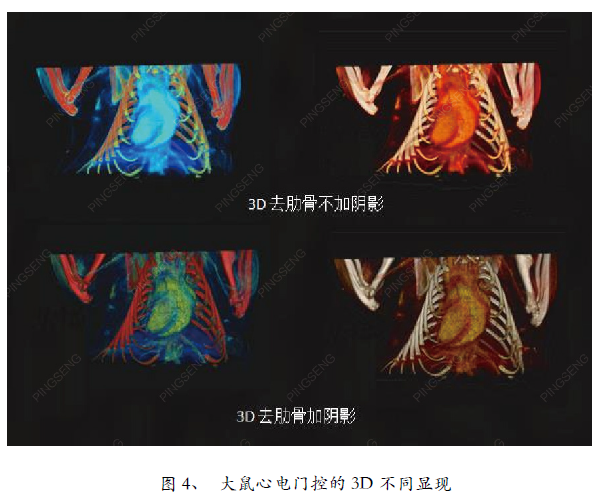 以下举例的是平生公司的小动物 CT设备(型号NEMO)通过心电门控技术应用的扫描成像,可以有效地去除心跳导致的运动伪影。