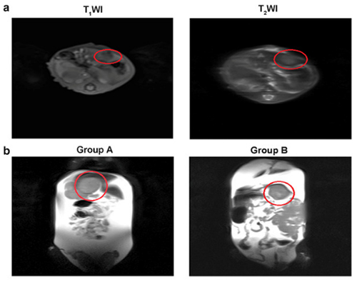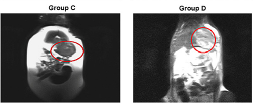 摘要:探讨索拉非尼抑制VEGF上调的促瘤作用的最佳治疗起始时间,临床实践中常见的局部治疗。方法:经局部肿瘤治疗,如TACE,静脉注射VEGF模拟其表达。40只有肝肿瘤的SD大鼠随机分为四组,在不同的时间点给予索拉非尼:(A)对照组:仅注射VEGF;(B)在VEGF注射前72小时使用索拉非尼;(C)同时与血管内皮生长因子注射是使用索拉非尼;(D)血管内皮生长因子注射后72小时开始使用索拉非尼。比较免疫组化(IHC)检测肿瘤生长速度、平均存活时间、VEGF的表达及微血管密度(MVD)。结果:使用索拉非尼三个组的肿瘤大小、平均存活时间与对照组相比有显著差异。A,B,C,D组平均存活时间分别为19.6 ± 1.78、31.2 ± 6.99、27.4 ± 4.9和26.5 ±4.6天。此外,B和D组在统计学上有显著差异。取肿瘤进行HE染色及免疫组化检查。B,C,和D组VEGF表达水平分别为42.8 ± 7.96、71.9 ± 15.73和73.6 ± 13.73,均明显低于对照组。此外,对照组MVD水平为109.2 ± 8.98,显著高于三个索拉非尼组。结论:根据我们的研究结果,给予索拉非尼最合适的方案是在vegf表达增加之前,这表明一个潜在的优势,通过抑制VEGF及VEGF受体的表达控制肿瘤的生长和延长试验动物的生存时间和减少肿瘤血管的生成。关键词:肝肿瘤 血管内皮生长因子 微血管密度 索拉非尼 总生存时间简介:肝细胞癌(HCC)是世界范围内癌症死亡的第二大原因,肝脏被认为是最常见的血源性肿瘤转移部位。局部治疗(TACE)被认为是治疗中晚期肝癌的有效治疗方法。这些治疗只维持病灶的短期稳定性,并提供有限的生存益处。血管内皮生长因子(VEGF)是肿瘤血管生成的最有力的调节因子之一,在肝癌局部治疗后显著升高,被认为是肿瘤残留和复发的重要因素之一。到目前为止,抗血管生成的多激酶抑制剂,索拉非尼,阻止Raf丝氨酸激酶和受体酪氨酸激酶的活性,如VEGFR-2,PDGFR-β、c-KIT、FLT-3,RET,导致肿瘤细胞增殖和新生血管形成的抑制作用。索拉非尼独自在BCLC C期肝癌的疗效已得到证实。然而,其局部反应为3.3%,索拉非尼治疗6.5个月后出现耐药性。在描述病情,BCLC分期C包括合并门静脉癌栓还不够全面(PVTT),而主干或分支门静脉癌栓不在这个阶段明确区分。肝动脉化疗栓塞治疗门静脉癌的安全性和有效性已被证实。事实上,两种治疗没有明确的禁忌,大多数患者B和C阶段联合治疗,如TACE + 索拉非尼,能有更好的预后。回顾性研究表明,TACE联合索拉非尼 对中晚期HC患者有益。同时,我们发现不同的研究采用了不同的模式和给药时间。显然,这些差异可能导致这些试验的争议。本研究通过动物实验研究索拉非尼治疗联合用药的最佳起始时间点。方法:肿瘤细胞和动物:Walker-256肿瘤细胞,4周龄BALB/c裸小鼠(体重12–15 g;N = 2)在大腿外侧一个位置进行肿瘤细胞注射;5 - 7周龄的雄性SD大鼠(体重150–200 g;N = 50)进行肝内肿瘤接种。动物饲养在SPF条件下,温度23 ± 3°C和相对湿度50 ± 10%。皮下肿瘤模型的建立:Walker 256肿瘤细胞用于肝肿瘤模型的建立,然后用磷酸盐缓冲盐水(PBS,16.5 mM磷酸盐,137 mM氯化钠,和2.7 mM氯化钾, pH为7.4)将肿瘤细胞悬浮液稀释至107细胞/ ml,并在BALB / c裸鼠大腿外侧处皮下接种。肿瘤细胞接种约9天后,注射部位可发现直径约1厘米的皮下肿瘤。肝癌模型的建立:使用先前描述的方法进行肿瘤植入。从供体动物皮下获得肿瘤后切碎,SD大鼠经下腹正中切口开腹,用10%水合氯醛在剂量300 mg/kg下进行腹腔麻醉。肝左外侧叶伸出腹腔。使用眼科镊子制备包膜下隧道的深度大约2-3个的叶厚度。一个实体肿瘤块被插入隧道。创面覆盖一小块明胶海绵。止血不是必要的,所有实验大鼠在术后恢复正常,第二天恢复正常活动。实验性治疗:植入后十天,用磁共振成像(MRI)评价肝肿瘤模型的建立。实验动物腹腔注射水合氯醛麻醉,然后进行MRI扫描。扫描参数为:回波时间:T1WI为82ms, T2WI为1.5ms,重复时间T1WI为1500ms, T2WI为508.7ms,T1WI及T2WI的重建层厚为5 mm。40只符合的肝肿瘤大鼠被随机分为四组:A组为对照组,其动物仅接受VEGF(20毫克/升,1毫升/公斤,体重)注射。B组(B组,n = 10 )VEGF注射前72 h进行索拉非尼(100 mg/kg体重)灌胃。C组(C,n = 10)进行索拉非尼灌胃同时与血管内皮生长因子注射。D组(D,N = 10 )血管内皮生长因子注射后72 h用索拉非尼灌胃。索拉非尼口服每日一次,连续10天,剂量水平为100毫克/公斤体重。重组大鼠VEGF165(20毫克每管)1000 rpm离心30秒,溶解在100毫升去离子水,并用所需浓度的生理盐水稀释。B、C、D组大鼠注射20 mg/L VEGF。影像学和病理学研究:磁共振成像用于评价肿瘤和腹水的发展。为确保肿瘤组织的肝移植,并在索拉非尼治疗10天后监测肿瘤和腹水的发展。在肿瘤快速进展的情况下,的动物一般情况下,根据皮毛、营养摄入量和行为进行每天评估。在动物死亡后,分析和比较大鼠肝组织标本的MVD和VEGF。我们使用兔抗鼠VEGF多克隆抗体和兔抗鼠CD34抗体。血管内皮生长因子与微血管的检测与计数:由两位资深病理学家对每一张幻灯片独立确定血管内皮生长因子蛋白表达和MVD水平。每例玻片计数100个上皮细胞,检测上皮细胞呈阳性反应,计数五个随机点,计数染色上皮细胞。用平均CD34阳性微血管计数检测肿瘤血管。光镜检查,五个染色微血管数目最多的区域被鉴定为“热点”。对微血管定量,我们数了五个“热点”使用200×放大视野,取其平均值。在坏死或炎症区域不进行计数。五个“热点”无法识别的部分被排除
