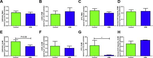 摘要:尽管有证据表明糖饮料(SSB)的摄入与心脏代谢疾病的发展有关,但其潜在机制仍不清楚。因此,目前的研究通过建立一个独特的体内实验模型来评估SSB的使用效果。雄性Wistar大鼠分为两组:a、给予SSB;b,给予纯水;每天给大鼠灌胃,实验剂量为每天半杯(人用)(SSB与水)。在基线(超声心动图)和离体灌流工作大鼠心脏缺血再灌注后评估心功能。还进行了口服葡萄糖耐量试验和线粒体呼吸分析。此外,还评估了非氧化葡萄糖途径(NOGPs)的作用,即多元醇途径、己糖胺生物合成途径(HBP)和PKC。这些数据表明:a)SSB的摄入导致体重增加,但在3个月和6个月后,对胰岛素抵抗和心脏功能没有产生主要影响;b)三个月后触发心肌NOGP激活,六个月后恢复;c)六个月后对脂肪酸底物供应的反应导致线粒体呼吸能力有所损害。SSB摄入不会导致心脏功能障碍或胰岛素抵抗。然而,分子水平的早期变化可能在长期内增加风险。关键词:营养 生理机能 心(脏)病学 分子生物学 生物化学简介:肥胖是一种全球性流行病,肥胖相关并发症如2型糖尿病(T2D)和心血管疾病(CVD)的表现也有所增加。尽管这种增长在本质上是多因素的,但众所周知的危险因素包括久坐的生活方式和不良的饮食习惯,例如增加糖饮料(SSB)的热量摄入。大量的危险因素和不良影响是由于身体不能补偿过量的卡路里消耗而引起的。研究表明,高SSB摄入量与心脏代谢疾病发病的许多危险因素有关,例如内脏脂肪沉积增加、甘油三酯和胆固醇代谢产物升高以及体重增加。各种碳水化合物(如糖和高果糖玉米糖浆)的消耗会导致饮食中的高血糖负荷、炎症和胰岛素抵抗。此外,高SSB消耗会导致血糖和胰岛素浓度升高,从而直接阻碍肝胰岛素信号传导,从而促进胰岛素抵抗。SSB摄入也可能不会引发饱腹感反应,这可能是液体热量升高和健康风险增加之间的重要联系。尽管有证据表明SSB的摄入与心脏代谢疾病的发展有关,但其导致此类并发症的潜在机制仍不清楚。我们通过建立一个独特的体内实验模型来评价SSB的使用效果。在目前的研究中,我们分别调查了3个月和6个月的实际SSB消耗是否会引发代谢失调和线粒体和心脏功能的假定联系。我们特别关注了非氧化葡萄糖途径(nogps)的作用,即多元醇途径、己糖胺生物合成途径(hbp)和pkc在这一过程中的作用,因为这些途径以前与心脏代谢并发症的发生有关。因为nogps是糖酵解的分支途径,对葡萄糖流量的升高有上调作用,从而触发有害的下游途径,从而导致心脏收缩功能障碍。动物和实验方案:体重~250克的雄性Wistar大鼠被分为两组:a、给予SSB;b,给予纯水;时间分别为3个月和6个月(每组n=6)。本品每100毫升含4克蔗糖,即每250毫升含176.7千焦。根据组分配和体重分类,每天用实验剂量灌胃大鼠。使用表面积体积比计算剂量体积,并根据重量进行校正。这里的剂量模拟了60公斤人每天摄入125毫升(54卡路里)的SSB。每周测定动物摄食量、每周给大鼠称重,记录体重增加的百分比,以便对肥胖的发展进行评估。实验程序完成后,对大鼠实施安乐死,获取器官、称重和速冻,并在-80°C下储存,直到进一步分析。采血:动物禁食过夜(至少12小时),然后使用3%异氟醚镇静,然后从右颈静脉抽取1毫升血液。血液离心,取上清,用标准程序评价尿酸、丙氨酸转氨酶(ALT)、血红蛋白A1C(HbA1c)、甘油三酯和总胆固醇水平(mmol/L)。采用不同的方法测定糖化血红蛋白。NGSP系统是应用最广泛的系统,其结果以糖化百分比表示。IFCC法是用高效液相色谱法分离糖化肽和非糖化肽。采用质谱法或毛细管电泳法对各组进行定量分析,结果以mmol/L表示。用回归方程计算EAG,测量单位为mmol/L.使用市售的酶联免疫吸附测定试剂盒测量胰岛素水平。口服葡萄糖耐量试验:最初评估基线空腹血糖水平,将葡萄糖粉溶解于蒸馏水中(0.86 g/kg体重),灌胃大鼠并监测120分钟。在以下时间点5、10、15、30、45、60和120(分钟)获取结果。线粒体呼吸作用的研究:如前所述,用极谱氧传感器在氧气分析仪2K的2 ml玻璃室中测量线粒体呼吸。使用皂苷渗透心肌纤维(~2 mg),并将其放入两个氧描记室,然后在氧通量稳定时测定内源性常规(R)呼吸。丙酮酸脂(5mM)、谷氨酸(10mM)和苹果酸脂(2mM)用于诱导葡萄糖氧化,用辛烷基肉碱(0.2 mM)和苹果酸(2 mM)诱导脂肪酸(FA)氧化.氧化磷酸化(oxphos)通过添加2.5 mM ADP,然后添加2.5μM寡霉素通过抑制ATP合成酶来诱导leak呼吸进行测定。.用解偶联剂CCCP(0.5 M)进行滴定,将呼吸提高到最大水平,称为电子传递系统(ETS)容量。然后将鱼藤酮(复合I抑制剂)添加到0.5M的最终浓度,同时,添加2.5 M抗霉素A可诱导残余氧消耗(抑制复合物III)。最后,滴定0.5 mM TMPD和2 mM抗坏血酸,评估复杂的静脉连接呼吸作为线粒体含量的代表。所有呼吸状态下的氧气流量均归一化为复合静脉流量,以纠正氧描记室中细胞含量的变化。计算过量的E-R容量,以确定ETS容量和R呼吸之间的差异。心功能:实验结束前一周,大鼠用1.5-2%的异氟醚进行轻微麻醉,并将其置于暖垫上的仰卧位置。采用VEVO 2100超声系统和13-25兆赫线性阵列传感器进行了闭胸超声心动图检查。为了评估左室舒张功能,在心尖4室视图中,通过脉冲多普勒获得二尖瓣E和波峰速度,然后计算E/A比。所有测量均在超声系统上安装软件的情况下,在至少三个连续心脏周期的平均值上进行离线测量。对于灌注研究,大鼠使用戊巴比妥钠麻醉(160 mg/kg