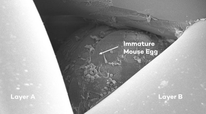科研人员在支架上打了若干个2mm的孔并向每个孔中植入40-50个卵泡细胞,以此来制构建一个“人造生物”卵巢。随后,他们通过手术切除了七只小鼠的卵巢,将“人造生物”卵巢放入小鼠体内并将卵巢缝合上。研究结果表明,每只老鼠的血管都能够渗透到支架中。血管能否渗透到支架中关系到移植的成败,因为这些血管能够向卵泡提供氧气和营养物质,并允许卵泡产生的激素随着血液进行循环。随后研究人员让小鼠进行交配,其中三只雌鼠生下健康的后代,并能够正常的分泌乳汁,这表明嵌入卵巢支架中卵泡细胞能够分泌正常的水平的激素。