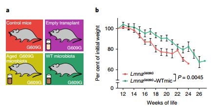 肠道微生物群正在成为多种代谢、免疫和神经内分泌通路的关键调节因子。肠道微生物群失调与肥胖、2型糖尿病、心血管疾病、非酒精性脂肪酸性肝病和癌症等主要疾病有关,但其在衰老中的确切作用仍有待阐明。而近日来自西班牙奥维耶多大学的科学家们对这一问题进行了研究,发现在衰老与肠道微生物群之间存在联系,相关研究成果发表在《Nature Medicine》上,题为“Healthspan and lifespan extension by fecal microbiota transplantation into progeroid mice”。
