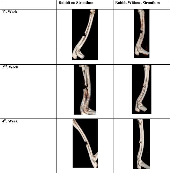 摘要:骨间隙骨折愈合是骨科手术面临的主要挑战之一。目前,这种治疗方法包括骨移植,无论是内固定还是外固定,对患者、家庭乃至社会都有重大影响。在市场上新的药物如合成骨形成剂包括特立帕肽和雷尼酸锶均用来刺激骨生长。本文从其作用机制出发,对兔桡骨骨折带骨间隙的愈合进行了研究。将十只家兔分为两组:实验组五只,对照组五只。我们在尺骨骨中创造了一个5毫米的骨间隙,同时也切除了骨膜。试验组动物接受450mg/kg雷尼酸锶每日口服给药,连续六周。每两周进行一次X射线、CT扫描和血液检查。六周后处死家兔,取桡骨和尺骨进行组织病理学检查。结果:基于X线和CT扫描结果基础上,对照组骨折愈合或骨形成速度加快。从X光检查结果来看,80%的骨折愈合。通过CT扫描,在六周研究结束时,对照组骨折的愈合率为60%。试验组没有骨折愈合。然而,组织病理学报告显示,两组均形成不同时期的愈伤组织。血清骨钙素和碱性磷酸酶在三周后基本保持不变。在六周结束时略有变化。结论:锶效应开始缓慢,虽然它可能不干扰骨细胞增殖,它可能干扰矿化和延迟骨折愈合的急性期。建议实施更大的样本量和更长的研究期,以确认我们的发现。关键词:骨折 锶 尺骨 骨钙素 碱性磷酸酶背景:延迟愈合、不愈合的治疗,畸形愈合和骨丢失对整形外科医生而言是个巨大挑战。骨折愈合障碍对患者的生活质量产生负面影响,导致医疗费用高,因为第二次手术要稳定骨折并刺激骨生长。许多情况下需要辅助措施,如骨移植,以刺激骨愈合和填补骨缺损。骨缺损修复的金标准是自体移植,但它们的使用受到供体部位的发病率和供应有限的影响。异体移植的局限性包括宿主对移植的免疫原性反应和疾病传播的可能性。为了克服这些局限性,越来越多的生物学材料正在开发有助于骨缺损的治疗。可供选择的骨替代物有自体骨或异体松质骨或皮质骨、脱钙骨基质、磷酸钙骨移植替代物或自体骨髓。除了骨移植和骨移植替代物,整形外科医生目前使用类固醇药物如特立帕肽和雷尼酸锶促进骨折愈合和骨质量的提高。一种合成代谢剂是通过增加骨量来提高骨强度,因为骨重建与骨平衡相结合。雷尼酸锶促进骨缺损的填充和提高大鼠骨愈合性能。锶核的大小与钙差不多,身体很容易吸收,将其结合到骨骼和牙釉质中。雷尼酸锶通过骨形成和骨吸收双重作用模式,提高骨微结构。这种药物被批准用于预防绝经后骨质疏松症和髋部骨折。临床前研究表明雷尼酸锶增强骨折愈合及骨整合,改进骨微结构。人类和四足动物尺骨具有相似的功能。如果尺骨折断,它通常发生在桡骨和尺骨形成关节的位置,或者尺骨与手的腕骨形成关节的地方。尺骨骨折引起剧烈疼痛,如果骨折愈合,移动受影响的关节困难甚至导致手臂畸形。骨折自然愈合的期限最长为6周左右,与对照组相比,期待雷尼酸锶治疗会触发更快的愈合。方法:使用雄性新西兰白兔,(n=5)28至32周,手术时体重范围2~2.5公斤。动物自由采食和饮水,饲养房间温度26-28°C、湿度60%。所有的外科手术都是在动物房里的操作间进行的。所有的兔子的耳朵都有一个永久的记号。手术前对动物称重。计算麻醉剂量(氯胺酮20mg/kg IM),包括镇静和肌松剂甲苯噻嗪(3mg/kg)。肌肉内注射抗生素(kombitrim 240, 1ml/ 10kg)。给兔左前腿剃毛。在整个实验过程中,所有兔子体重平均增加0.1 - 0.3公斤。手术技术:麻醉完成后,左前腿剃毛,将兔子仰卧位置于手术台上。使用碘伏消毒后,铺一次性无菌单。手术过程采用无菌技术。识别骨干尺骨骨中心,对皮肤表面标记,在计划切口处进行局部麻醉。做一个1.5厘米长的纵行切口。确定肌内隔膜,显露尺骨中轴线。分离软组织以暴露骨头,在左尺骨内侧表面的皮肤边界做长4厘米的纵行切口,在现有骨干中心标记2厘米的近端和2 cm远端。然后切开筋膜,采用钝性解剖分离尺肌,露出尺骨骨。在骨上标记了截骨的计划位置,并用一个小的不锈钢直尺测量。然后用振动锯进行截骨,小心避免损伤骨膜。在截骨过程中用生理盐水冲洗。每个尺骨都有一个5毫米的缺陷。所有家兔均接受手术,并在几天内恢复正常活动。无伤口感染。手术后一天所有动物均能自由走动。无神经系统损伤,如瘫痪、抽搐、呼吸窘迫或疼痛迹象。锶治疗:治疗组每只兔口服雷尼酸锶溶液5毫升(2克雷尼酸锶混合在10毫升蒸馏水中)连续喂养六周。宏观评价:经过尸检,去除软组织,获得桡骨和尺骨。肉眼观察骨缺损部位,并拍摄照片。X射线和CT扫描:使用X射线和CT扫描评价各组兔骨缺损愈合情况。每只兔子分别在1, 3周和6周进行扫描,以确定各组缺损愈合的进展。在全身麻醉下,将兔子准确地定位在CT扫描机右侧的位置上,左前腿抬高在样品架上。桡骨和尺骨长轴与X射线轴垂直排列。图像层厚0.6 mm,2048?×?2048像素分辨率。扫描得到的图像保存在DICOM格式中。由资深整形外科医生评估如钙化,出现愈伤组织,骨小梁的连续性。骨生长质量评价:评估初始和桥接骨痂形成。获得三维重建图像较好的观察和评价骨再生。在兔尺骨模型上,如果在骨片上观察到可见桥接的骨痂,则可以认为这种融合是成功的。桥接的骨痂需要在三个皮质上可见。我们不能做骨折愈合的临床评估,因为桡骨完整,兔子能立即负重。从射线照片上进行评估和分析各组骨生长的模式和行为。生化试验:分别在