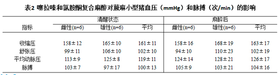 关键词: 蕨麻小型猪;氯胺酮;噻拉嗪;复合麻醉;血压;脉搏