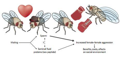 交配后雌性和其他雌性之间的进攻性上升的诱因和潜在性结果。Chapman & Wolfner