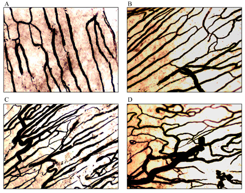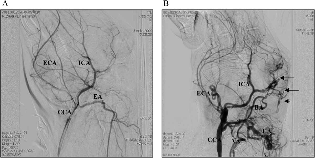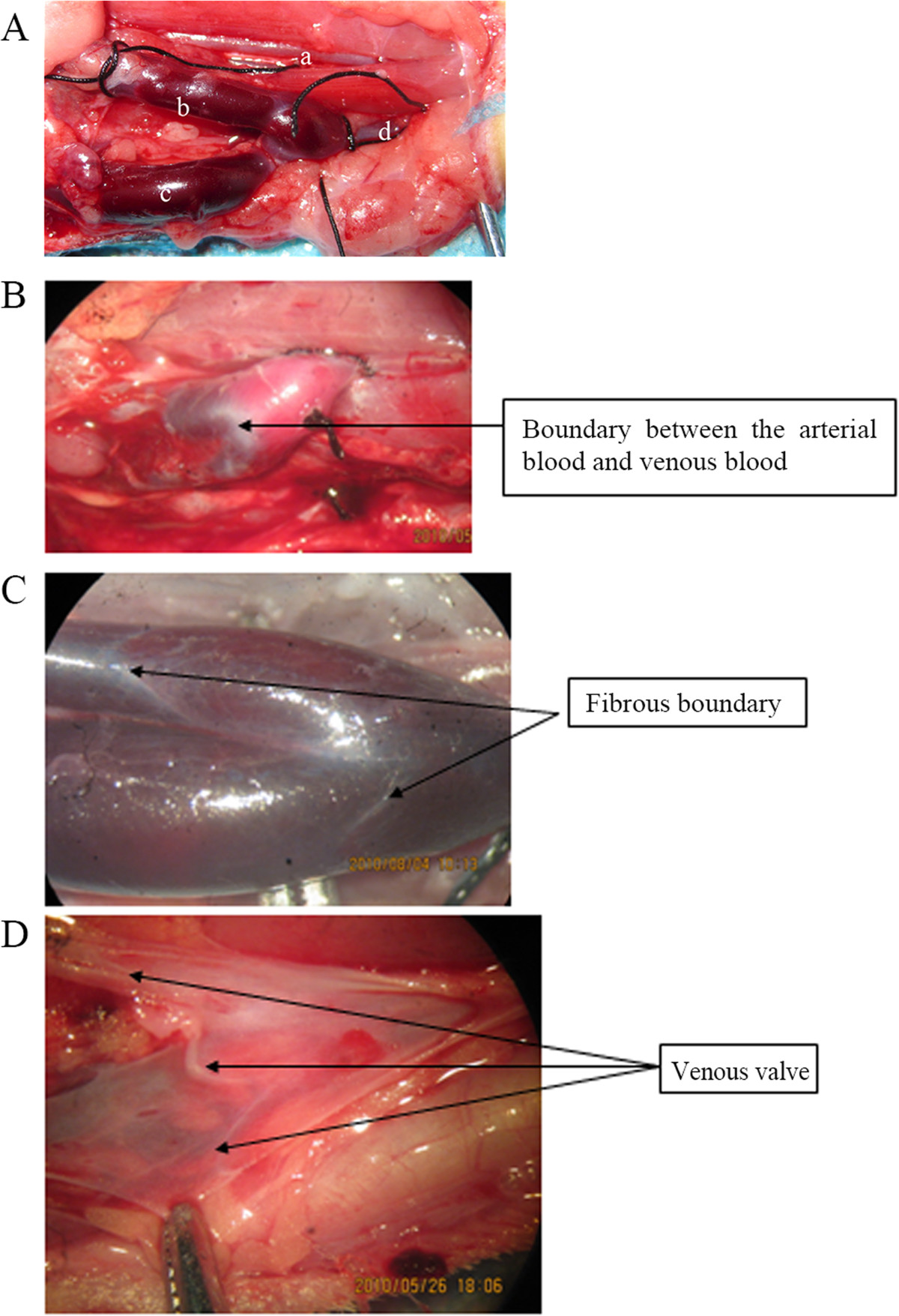 背景:硬脑膜动静脉瘘的形成原因尚未明确。本研究旨在探讨兔颅内静脉高压致硬脑膜动静脉瘘形成的机制。结果:采用兔模型,右侧颈总动脉与面后静脉加上对侧颈外静脉结扎后的端对端和端侧吻合,可产生颅内静脉高压致硬脑膜动静脉瘘的形成。相比在1周,2周,3周,90天后动静脉瘘的形成,在1 周和2周的血管内皮生长因子的表达水平与显著高于对照组,3周和90天组。1周组与对照组,2周、3周和90天组相比,缺氧诱导因子-1α表达明显升高。Western印迹结果显示,1周组血管内皮生长因子表达水平最高。各组血管内皮生长因子表达水平差异有统计学意义。结论:兔模型的实验结果表明,高颅内静脉压是硬脑膜动静脉瘘形成的关键。脑灌注压力不足引起的脑缺血在颅内静脉压增高导致缺氧诱导因子-1α表达增加,血管内皮生长因子表达增加的过程中起关键作用。关键词:硬脑膜动静脉瘘 兔模型 颅内静脉高压 缺氧诱导因子-1 血管内皮生长因子背景:硬脑膜动静脉瘘(DAVF)是一种异常的连接动脉和脑膜静脉或硬膜静脉窦或皮质静脉。是一种颅内血管畸形。硬脑膜动静脉瘘约占颅内血管畸形的10-15%,幕上动静脉畸形6%和幕下动静脉畸形的35%。硬脑膜动静脉瘘可发生在任何部位,但这些血管畸形最常见于海绵窦、横窦、乙状窦及上矢状窦(SSS)。DAVF的治疗形式主要是血管内栓塞治疗。DAVF的原因尚未明确。有先天和后天的原因。有一种观点认为,硬脑膜动静脉瘘是一种颅内动静脉畸形和硬脑膜血管异常引起的先天性疾病。已经有很多临床试验表明,硬脑膜动静脉瘘的形成可能是造成脑外伤,静脉窦炎症、静脉窦血栓形成、颅内肿瘤、脑手术、高凝状态、血液分子异常等,DAVF是一种获得性血管疾病。认为获得性DAVF是由于DAVF和静脉窦血栓形成之间的关系较为密切。许多研究者建立了大鼠静脉窦高压模型颈总动脉颈外静脉吻合(CCA-EJV)方法。1)高静脉窦压力可能诱发DAVF;2)自动排除大静脉窦压力后DAVF消失;3)术后28 d,高压组静脉压明显升高;4)静脉窦血栓形成是高静脉窦压的危险因素。有利于DAVF形成关键点是颅内静脉窦压增高。有两种理论解释:一是开放的"生理动静脉吻合",另一种是"血管内皮生长因子诱导的硬脑膜血管生成。"本研究的目的是通过使用兔模型诱导形成的高颅内静脉压调查更详细的DAVF形成机制。本研究采用cca-pfv吻合产生高颅内静脉压模型,成功诱导DAVF形成,首次发现缺氧诱导因子-1α(HIF-1α)和血管内皮生长因子在兔模型中的表达。方法:实验动物:该研究经过福利伦理委员会的批准。100只日本大耳雄兔(体重2.0~2.5 kg)。麻醉:通过注入1%戊巴比妥钠(25毫克/公斤)到耳静脉(EV)进行麻醉诱导,包括动静脉吻合,颈动脉放置导管,收获标本。百分之一戊巴比妥钠经导管注入颈动脉进行脑血管造影。动物准备:实验动物分组:五十只雄性日本长耳兔随机分为五组,A -E. A组(对照组)假手术(n = 10)。B组实行右侧颈总动脉(CCA)-面后静脉(PFV)端端吻合术(EEA) (n = 10)。C组实行右侧颈总动脉(CCA)-面后静脉(PFV)加左侧颈外静脉(EJV)(n = 10)。D组实行右侧颈总动脉-面后静脉cca-pfv端侧吻合(ESA)(n = 10)。E组实行右侧右侧颈总动脉-面后静脉cca-pfv端侧吻合加左侧颈外静脉(EJV)结扎(n = 10)。术后7、14、90天各组随机抽取2只兔,墨汁灌注后计数硬脑膜微血管数。术后90天,每组选取4只兔进行数字减影心血管造影术冰观察DAVF的形成。另取五十只日本大耳白兔随机分为五组,A -E组。A组(对照组)假手术(n = 10)。B-E组(n = 40)实行右侧颈总动脉(CCA)-面后静脉(PFV)端端吻合术(EEA)加左侧颈外静脉(EJV)结扎。在B、C、D、E组(n=10)分别于术后1周、2周、三周、术后第90天取标本进行进一步免疫组化(每组6只)和蛋白印迹分析(每组4只)。模型制备:手术前动物禁食10小时,不限制饮水。1%戊巴比妥钠(25毫克/千克)被注入到左耳静脉EV。麻醉后将兔固定在手术台上。颈部去毛并用碘伏消毒,皮肤切口在颈部。以下步骤在显微镜下进行。1、 A组:解剖分离出双侧颈外静脉。近端是在前、后面部静脉和颈外静脉交叉前部1cm结扎,远端是前、后面部静脉和颈外静脉交叉后部1cm结扎。暴露右侧颈动脉三角,钝性分离2厘米的CCA。24 #静脉(IV)导管分别穿刺入面后静脉(PFV)和CCA,并与侵入式压力测量仪器相连,测量CCA和PFV实验压力。局部应用少量青霉素后缝合切口。2、 B组分离出双侧颈外静脉和右侧CCA(长度等于假手术组)。测定正常的动脉压和PFV压力。右侧颈外静脉的前端被结扎(前面部静脉和后前面部静脉和颈外静脉的交界处0.5厘米)。前面静脉远端(AFV)也被结扎。用血管夹夹住PFV,面后静脉(PFV)与颈外静脉交叉处前约3cm处切断。CCA的近端被截断,远端被结扎和切断,血管的内腔用1毫克/毫升肝素/生理盐水溶液洗涤。CCA和PFA的残余部分用亚甲蓝染色,然后用1毫克/毫升肝素/生理盐水洗涤。端到端的CCA和PFV吻合用9-0缝线进行。吻合术后进行吻合口通畅验证。测量吻合后的PFV压力,和切口使用少量青霉素后缝合伤口。3、 C组 分离出右侧CCA、EJV和左侧EJV。左侧EJV用4-0缝合结扎。其他操作同B组。4、 D组 分离出双侧颈外静脉与右侧CCA(分离长度与假手术组相同)。测定正常的动脉压和PFV压力。对右侧EJV的前段和AFV的远端进行结扎。夹住PFV,在PFV和EJV交叉处约3mm的地方切断。血管腔用1毫克/毫升肝素/生理盐水洗涤。使用两个血管夹来夹住CCA,两个剪辑之间的
