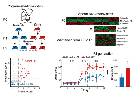 同时,研究团队的实验结果证明可卡因成瘾向后代的遗传是由主动觅药经历诱发的,而不是由于基因组水平的变异引起的,因此可能依赖于表观遗传学的改变,即在 DNA 序列不发生改变的情况下基因的可遗传的修饰变化。
