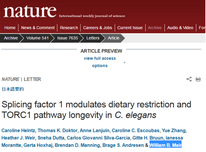 当研究小组利用饮食限制处理线虫,延长它们的寿命后发现,线虫在它们的生命中维持了年轻的剪接模式。重要的是,这一现象并不局限于一个基因。此外,研究人员还鉴定出了连接剪接与衰老的关键分子——剪接因子 1(splicing factor 1,SFA-1)。SFA- 1 同时存在于线虫和人类中。研究证实,这一因子在衰老相关通路中发挥了关键的作用。SFA- 1 过表达足以延长寿命。