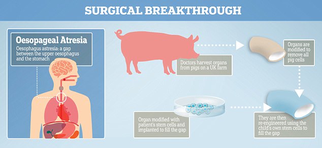 移植到患儿体内的猪器官是经过患儿自身干细胞修饰过的。手术所用的不同尺寸的食道来自英国农场。这些器官在移植前先是被清除所有细胞,并利用患者的干细胞进行重编程,以避免移植后引发排斥反应。干细胞来自儿童的肌肉以及新生儿的残余食道,整个组织工程大约需要八周。治疗费用预计为10万英镑/每次,但医生认为这种成本会下降。