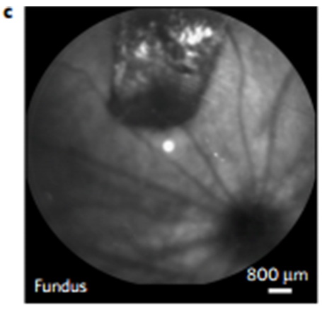 植入大鼠的人造视网膜而意大利的这个研究团队制作的人造视网膜分为三层,中间是用导电聚合物制作的一层薄膜,底衬丝织物,外覆半导体聚合物。这层半导体聚合物本质上是一种光伏材料,能吸收入眼的光子。然后,人造视网膜就会产生电信号以刺激视网膜神经元,接过受损的感光细胞原本的职责。