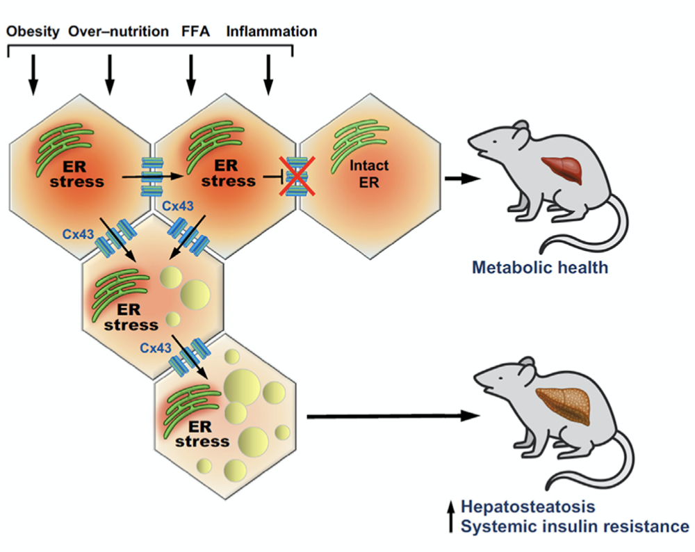 肥胖时Cx43介导有害的细胞间通讯,导致脂肪肝和新陈代谢改变