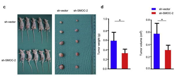 图3. SMOC-2对癌细胞体内成瘤的影响。