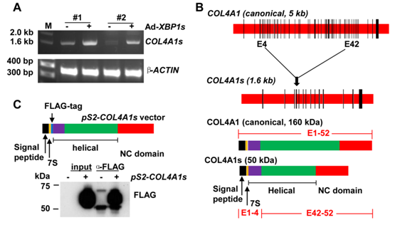过表达XBP1s诱导COL4A1新型异构体的表达