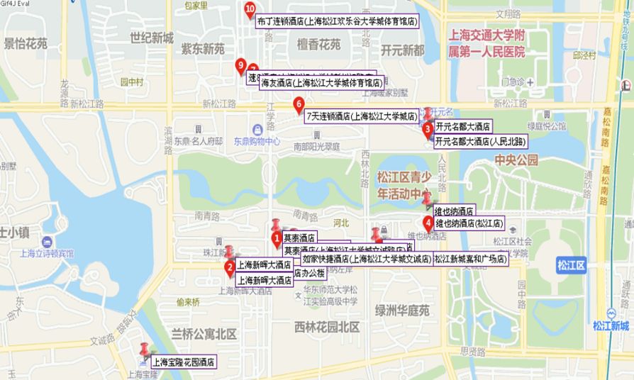 1、酒店距离地铁9号线“松江新城站”约2.3公里;