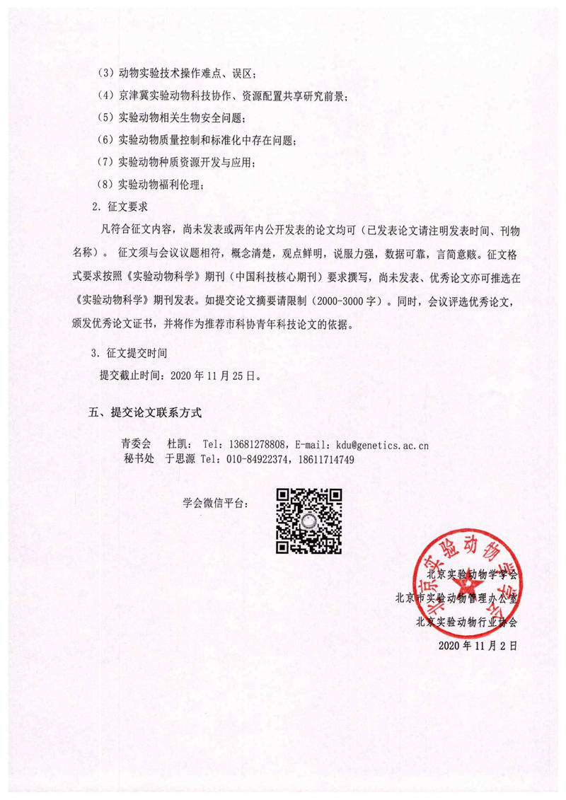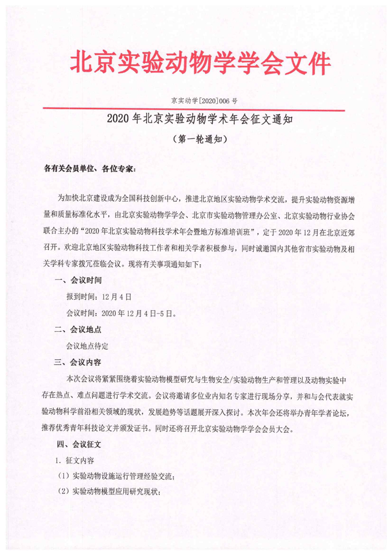 2020年北京实验动物学术年会征文通知(第一轮通知)