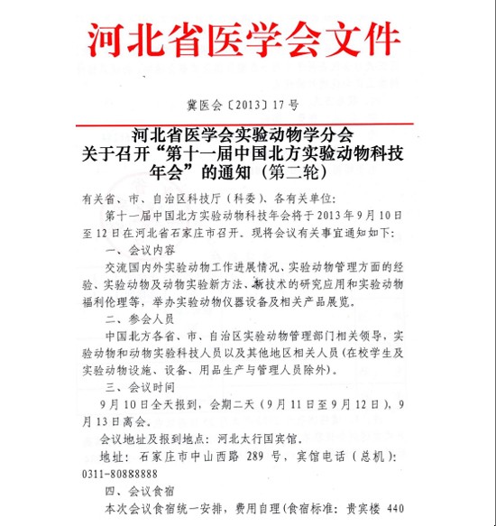 河北省医学会关于第十一届北方实验动物科技年会的通知