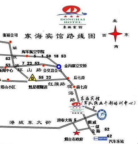 能直接到达东海宾馆的公交线路有1、5、7、18、23、50、52、53、55、62、33路。