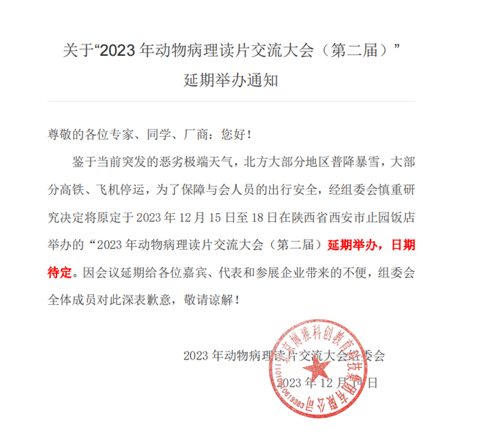 2023年动物病理读片交流大会(第二届)延期举办通知