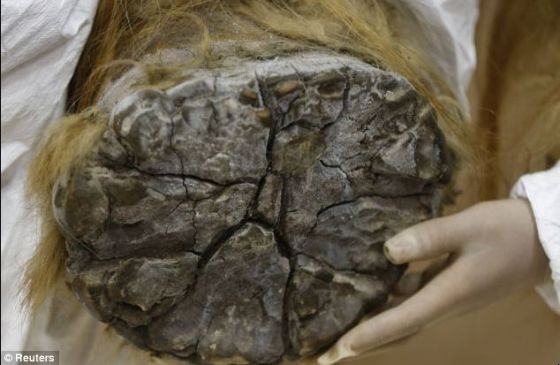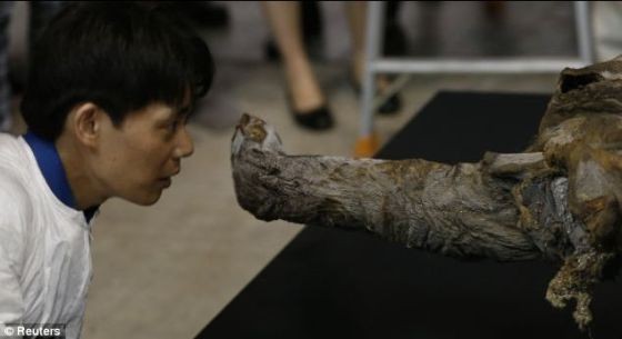 正在日本横滨展出的“尤卡”尸体。“尤卡”生活在大约3.9万年前。“尤卡”尸体的毛发和组织均保留下来,保存完整程度让人感到吃惊