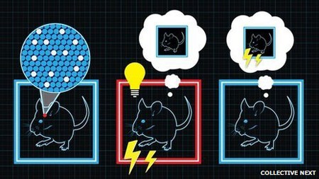 麻省理工学院的神经科学家们用光学及遗传学操作的组合在小鼠的脑子中植入了虚假的记忆,使得这些小鼠在一种完全不同的情况下回忆了某种在某一情况下所铸造的心智展现。研究人员说他们将虚假记忆移植到了老鼠的大脑里,并且这些虚假记忆和真实记忆的所产生的记忆痕迹在本质上是没有差别的。这项研究发表在Science杂志上。