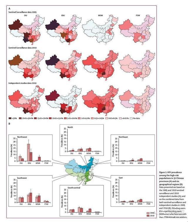 本研究基于官方的监测哨点和独立研究数据,第一次全面概述了全国省级水平的HIV流行趋势。中国HIV流行仍然集中在注射吸毒者、性工作者、男男性行为者中。中国西南地区HIV流行率特别高。男男性行为已成为HIV传播的主要途径。目前,HIV的流行正处于一个过渡阶段,以男男性行为导致HIV传播快速激增为标志。官方监测哨点的数据与众多的独立研究相类似,提示监测哨点足以评估中国HIV传播的程度和模式。在过去10年,中国的HIV预防和控制已经取得了稳步推进。然而,鉴于HIV传播到西南、西北以外新的地区,挑战依然存在。