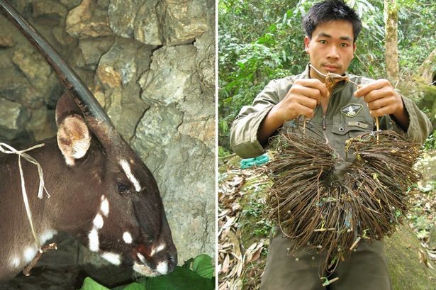 据英国《镜报》报道,濒危物种“亚洲独角兽”现身越南,这是本世纪人类首次在野外观察到这一罕见物种。这种动物学名叫Saola,与牛和羚羊同属牛科动物,看上去更像羚羊。它头顶长有两只长长的尖角,可达半米,又像是传说中的独角兽。因其只出现在亚洲地区,也被称为“亚洲独角兽”,属于异常珍稀的物种。今年九月,世界自然基金会(WWF)和越南政府森林保护部门共同组成的一只摄像小分队在越南中央安南山区拍到了Saola的身影。世界自然基金会越南地区负责人范玉霆博士说:“当我们看到Saola的照片时,简直不敢相信自己的眼睛。在东南亚动物保护者的眼中,Saola就是圣物,这一发现令人激动,也让我们看到了挽救这一濒危物种的希望。”上一次有记载的人类观察到Saola是在1999年,摄像师在老挝捕捉到了Saola的镜头。2010年8月,有消息称老挝村民抓到了一只Saola,不过几天后它就死了。为保护Saola免遭盗猎者猎杀,世界自然基金会设立了专门的项目,从当地招募护林员进行巡视。2011年以来,护林员们已经移除了3万多处专门猎杀Saola的陷阱,捣毁了600多个非法猎杀窝点。专家指出,目前地球上存活的Saola为数寥寥,可能不到100只。1992年,越南林业部和世界自然基金会的一个联合小组在越南老挝交界处的森林里发现了一只Saola,遗憾的是,当时他们只能从盗猎者窝点处遗弃的一只形状怪异的动物头骨来判断这是一只Saola。