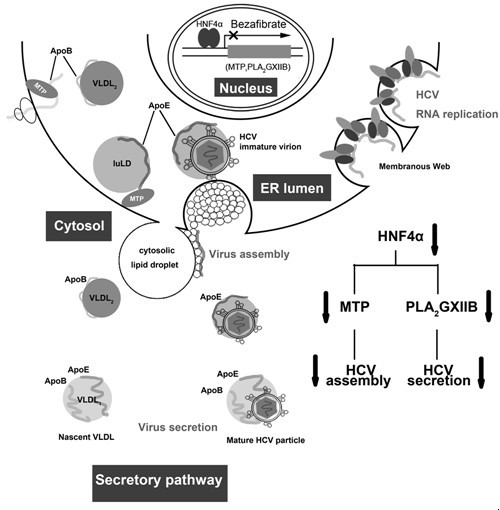 中科院广州生物医药与健康研究院彭涛实验室联合陈凌实验室近期发现,人肝细胞核因子-4α(HNF4α)在HCV的包装和释放过程中发挥重要作用,其下游因子磷脂酶A2GXIIB(PLA2GXIIB)和微粒体甘油三酯转运蛋白(MTP)共同参与其对HCV包装和释放过程的调控。该研究提示了HCV可能利用HNF4α来挟持VLDL通路为己所用。相关研究成果已于近期在病毒学杂志JournalofVirology上在线发表。