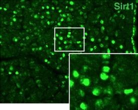 由美国国家卫生研究院国家衰老研究所的拉斐尔-德卡布博士率领的科研组检测了激活SIRT1的小分子SIRT1720对老鼠健康和寿命产生的影响。德卡布表示:“我们首次验证了人造SIRT1活化剂不仅延长以标准食物为食的老鼠的寿命,还改善它们的健康跨度。这说明我们可能研发出减轻和年龄有关的新陈代谢疾病以及慢性疾负担的分子。”这些研究人员还发现,SRT1720使老鼠的平均寿命延长8.8%。