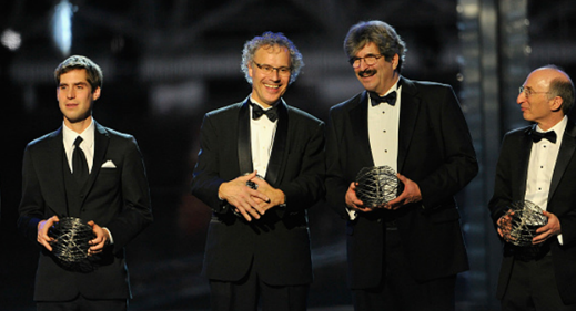 Victor Ambros(左二)、 Gary Ruvkun(右二)对于其它科学家来说,他们很少有人会对Charpentier和 Doudna因CRISPR获奖而感到嫉妒,因为它确实在很短的时间内使生物体的基因组编辑变得更加容易。使用遗传物质控制细胞活性是今年“生命科学突破奖”评奖的一个主题。来自马萨诸塞大学医学院的Victor Ambros 和哈佛医学院的 Gary Ruvkun因发现microRNA以及它调控基因表达的作用获奖;来自洛克菲勒大学的C. David Allis因发现组蛋白的共价修饰及其在调控基因表达及染色质组成中发挥的功能获奖。第六个获生命科学突破奖的是约瑟夫傅立叶大学(Joseph Fourier University)的Alim-Louis Benabid,一名神经外科医生,他首创的高频深度脑刺激(一种电刺激,high-frequency deep brain stimulation)可以帮助控制帕金森患者颤抖和其它症状。