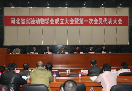 2014年11月21日下午,由河北医科大学和河北中医学院、河北大学、河北联合大学、河北省疾病预防控制中心、华北制药集团等单位发起筹备的河北省实验动物学会在石家庄市河北医科大学召开成立大会暨第一次会员代表大会。中国实验动物学会理事长秦川,河北省政协副主席、科学技术协会主席段惠军,河北省科技厅巡视员廖波,河北省民政厅民间组织管理局调研员郭百服,河北医科大学党委书记、校长温进坤,副校长张海林以及学校相关部门负责人出席大会。来自省内相关高校、科研机构、制药企业的会员代表100多人参加了大会。