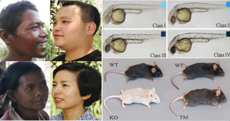 东亚地区是一个纬度跨度很大的地区,常年紫外线的照射量随着纬度的不同有所差异。为了深入研究东亚人群肤色适应的遗传机理,中国科学院昆明动物研究所宿兵研究员实验室与美国贝勒医学院、清华大学和辽宁师范大学等单位合作采集了近1000份东亚人群的血液样本和肤色表型数据。通过全基因组芯片分析,他们找到了深肤色的南亚语系人群(生活在我国云南以及东南亚国家)与浅肤色的中国汉族人群之间遗传差异最大的色素基因——OCA2。 进一步的分子进化分析表明,OCA2在东亚人群中受到了强烈的达尔文正向选择,其中的一个氨基酸突变(rs1800414, His615Arg)在东亚人群中广泛分布,而欧洲和非洲人群中则没有这个突变。肤色表型相关性分析、黑色素细胞功能实验,斑马鱼转基因实验、小鼠Cas9基因突变位点替换实验以及透射电镜分析系统证明了这个突变会明显影响黑色素的合成和成熟,最终导致东亚人群肤色的变浅。该项研究在分子机理上阐明了东亚人群肤色变浅的内在原因,对深入理解趋同进化和表型适应性进化的遗传机制具有重要意义。