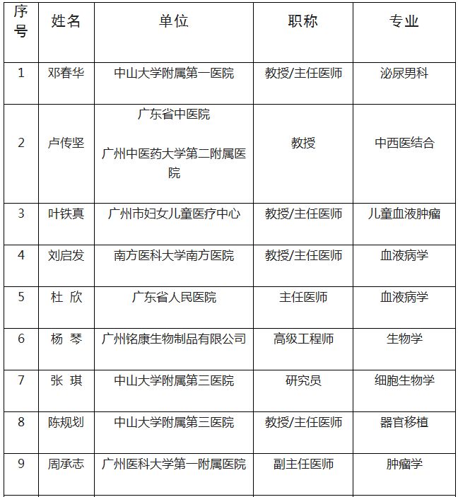 同时,通知还表示,广东省各地市及顺德区可根据工作需要,参照成立干细胞临床研究专家委员会,以下为广东省干细胞临床研究专家委员会名单: