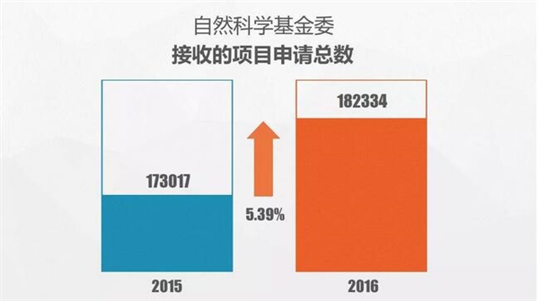 2016年是“十三五”规划启动之年,是全面建成小康社会决胜阶段的开局之年,也是推进结构性改革的攻坚之年,对于国家自然科学基金委员会(以下简称“自然科学基金委”)来说更是“三十而立”的特殊之年。在新的历史起点上,自然科学基金委牢牢把握“五位一体”总体布局,紧紧围绕“四个全面”战略布局,深入贯彻“创新、协调、绿色、开放、共享”的五大发展理念,突出“聚力前瞻部署、聚力科学突破、聚力精准管理”的三大战略导向,按照坚持定位、激励原创、统筹支持、升级发展的总体思路,构筑科学基金“十三五”发展新格局。全委按照“支持基础研究和科学前沿探索、支持人才和团队建设、增强我国源头创新能力”的战略定位,按计划完成了各类项目申请受理和评审工作,并在优化人才资助模式、试点实施基础科学中心项目、推进战略协同等方面进行了有益的探索和尝试。申请情况2016年,自然科学基金委共接收各类项目申请182334项,比去年的173017项增加5.39%。