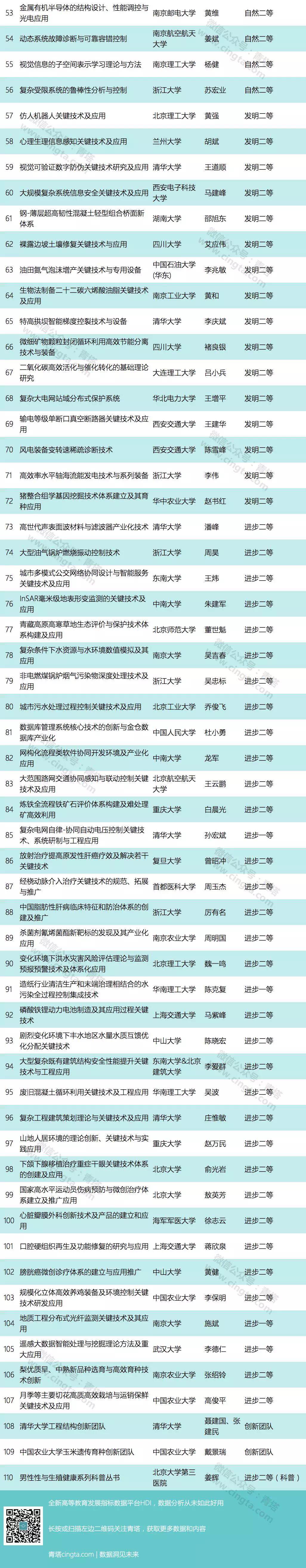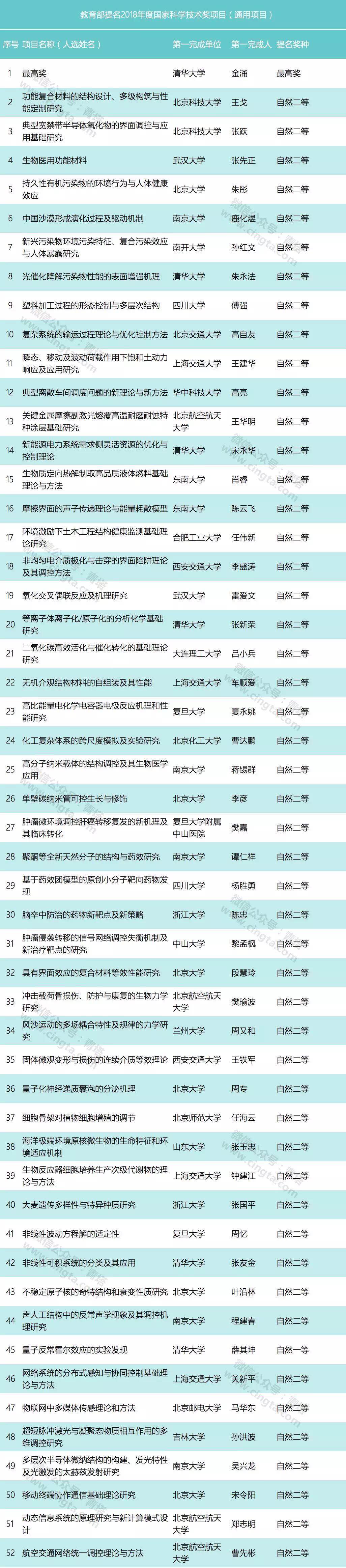 1月11日,教育部正式公示了2018年拟推荐国家科学技术奖项目,共有110项成果获得推荐。其中最高科学奖1项,国家自然科学奖55项,国家技术发明奖16项,国家科技进步奖38项。另有5项技术发明奖、4项科技进步奖为专用项目,内部公示。