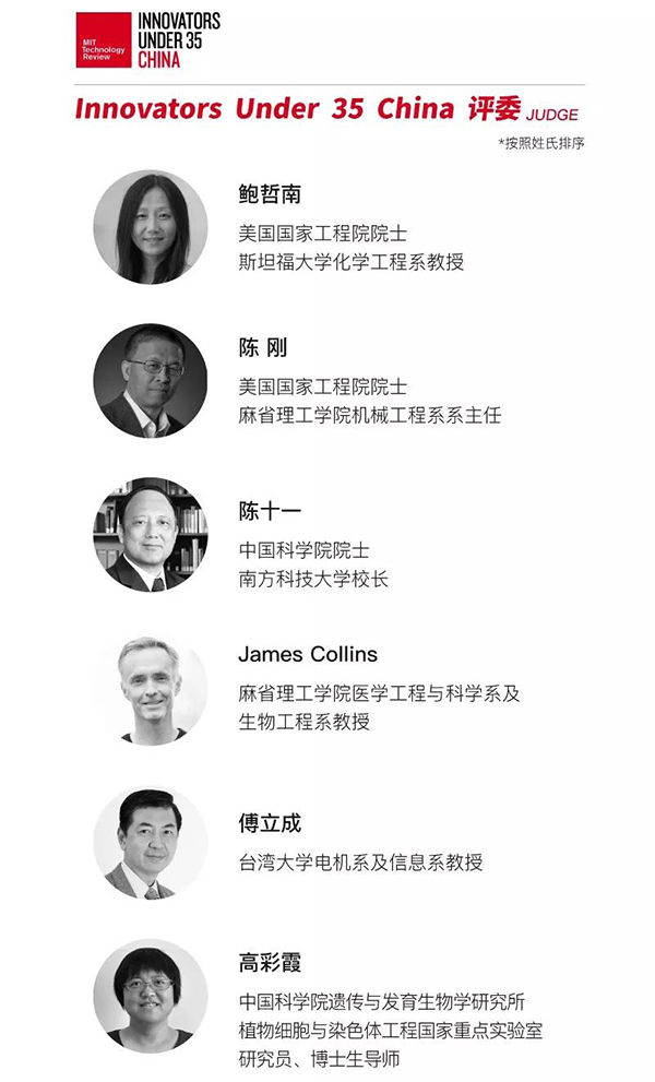 在当天的典礼现场,《麻省理工科技评论》公布了由中美编辑部及评审委员会共同评选出的“35 岁以下科技创新 35 人”,以下为获奖者名单: