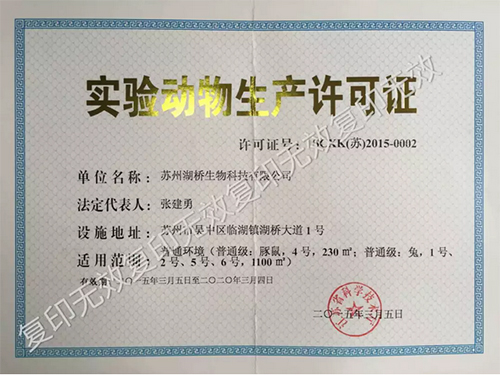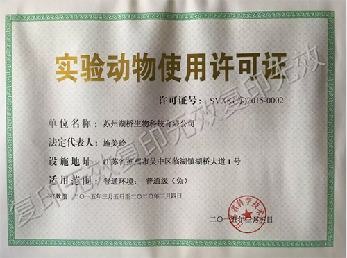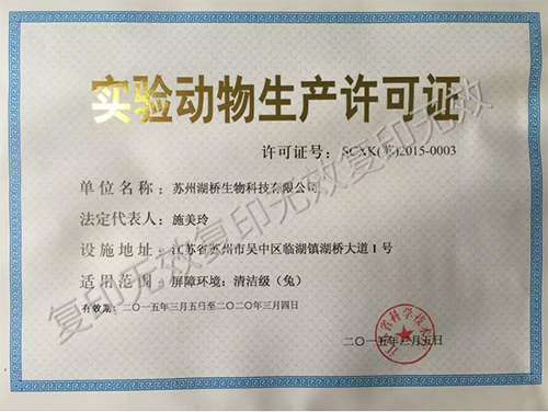 4.模式动物。2017年8月,苏州湖桥生物与西安交通大学医学部共同建立动物模型实验室,共同研发基因敲除家兔模型。技术专利发明人:刘恩岐博士担任技术总监。