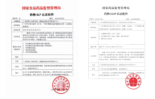 ·2010年,通过GLP认证定期检查;