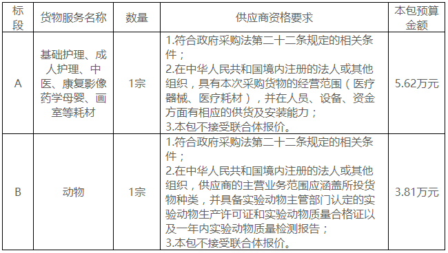 二、采购项目名称:泰山护理职业学院实验实训耗材、动物采购项目