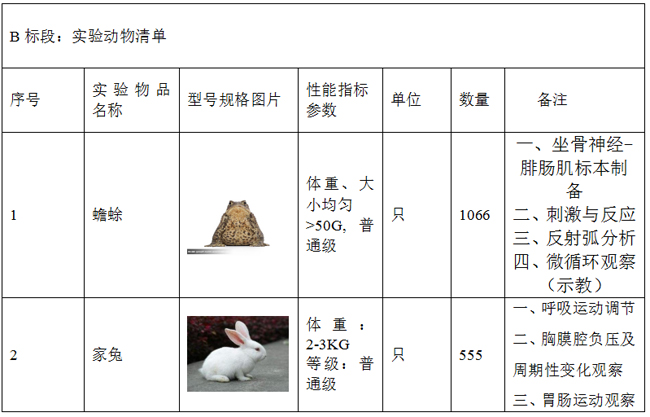 其中B标段--实验动物清单:
