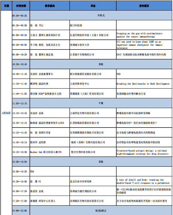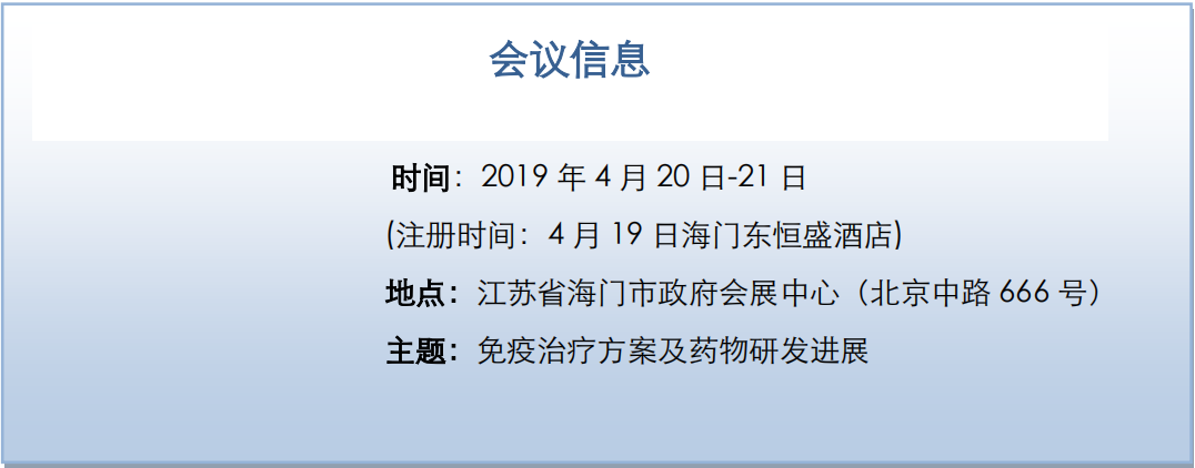 本次大会聚焦肿瘤免疫及自身免疫,我们邀请到一直活跃在新药研发前沿领域的专家做为演讲嘉宾,齐聚海门共同探讨免疫治疗方案及药物研发的前沿进展。