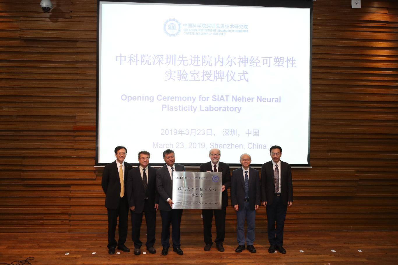 2019年3月23日,深圳首个脑科学“诺奖实验室”——深圳内尔神经可塑性实验室在中国科学院深圳先进技术研究院正式授牌。中国科学院副院长张亚平院士、深圳市副市长王立新、中国科学院前沿科学与教育局局长徐涛院士、中国科学院国际合作局局长曹京华、深圳先进院院长樊建平等与诺奖得主内尔教授联合出席仪式并为“诺奖实验室”授牌。深圳市副市长王立新在致辞中提到,深圳市政府重点布局基础研究,成立了一系列基础研究机构,吸引了大量海内外人才来深圳从事科研创新活动;深圳先进院是深圳市和中科院合作的成果,已发展成为了当前国内新型科研机构的代表,此次诺奖实验室、院士工作站的成立,将进一步加强深圳先进院在脑科学等领域的科研和人才聚集的能力。中科院副院长张亚平院士在致辞中表示,解决脑科学领域国际上公认的科学问题和重大疾病挑战,不仅是各国科学家们的共同梦想,更是全社会的、全人类的共同责任所在。深圳先进院在中科院、深圳市政府等部门大力支持下快速发展。深圳市前瞻布局,依托深圳先进院,联合香港等优势研究团队,共同建设深港脑科学创新研究院和脑科学重大设施,是推动粤港创新体系建设的重要举措;中科院将从科技项目布局、人才智力、国际资源汇集等方面积极予以支持。期待这些国际合作团队在深圳这座充满活力、开放创新的城市取得丰硕的科研成果。同时深圳先进院院长樊建平希望实验室在内尔教授的带领下促进深圳与国际一流脑科学研究机构的合作,建成粤港澳主要的脑科学聚集地,在国际脑科学舞台上发出‘深圳声音’。”厄温·内尔教授表示:“很高兴能在此成立实验室,这将会是在中国设立的唯一科研实验室,今后我们会在这里一起开展脑科学领域的原创性研究。”据深圳先进院脑认知与脑疾病研究所所长王立平介绍:目前该诺奖实验室已拥有近全职研究团队人员和支撑团队近30人;内尔教授为实验室主任,实验室执行主任朱英杰,其他高级职称研究人员包括周涛、孟志强、陈祖昕、刘欣安等;该团队已经在深圳先进院脑科学研究所完善的研究平台支撑下开展了一系列前期研究,预计2019年底,团队将达到50人,我们希望将此实验室建成深圳脑科学吸引国际创新资源新的亮点。该实验室将以神经可塑性、神经性疾病及药物靶点等为主要研究方向。