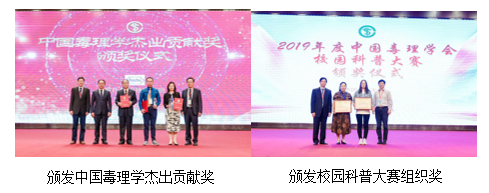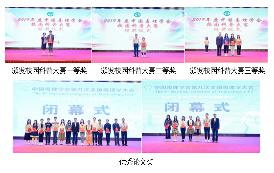 大会重视技术应用推广和成果转化。在大会开幕前组织举办了三个继续教育培训班,包括OECD 测试指南439和492体外皮肤和眼刺激测试方法、模式动物研究进展及在毒理学研究中的应用、干细胞技术在毒理学研究中的应用。这些继续教育培训报告均免费向全体参会代表开放,共有8名国内专家就相关专题进行了培训交流,受到代表们的热烈欢迎。大会还得到了北京慧荣和科技有限公司、北京昭衍新药研究中心股份有限公司、欧莱雅(中国)有限公司、上海瑞曼信息科技有限公司、玫琳凯(中国)有限公司、联合利华(中国)投资有限公司、天津开发区合普工贸有限公司等公司的支持,共计30余家企业积极参加科技展览和成果推广。同时还举行了毒理学家资格认证考试,认证考试101人参加,其中包括来自国外已取得美国资格认证的学者。会务组织工作高效务实。大会采用了更新的会议网站,实现了PC端和手机端都能操作;实现了注册、投稿、多种方式缴费、开发票、签到等在会议网站一体化进行,为参会代表提供了极大的方便。大会秘书处及各个小组团结协作,在签到注册、会议宣传、会场保障、餐饮住宿行程安排等多方面通力合作,保证了会议的顺利进行,取得了参会代表的广泛认可。会议还期间还举行了2019年度毒理学杰出贡献奖、校园科普大赛奖、优秀论文、志愿者表彰仪式。陈春英、蒋义国、牛侨三位学者获得中国毒理学杰出贡献奖,周平坤理事长、赵宇亮院士、罗氏集团解建勋教授颁奖;表彰了2019年校园科普大赛的两个获奖单位山东大学公共卫生学院、内蒙古科技大学包头医学院以及5名优秀参赛个人;给20位优秀论文获得者颁发了证书;给大会支持单位代表颁发了纪念奖牌。