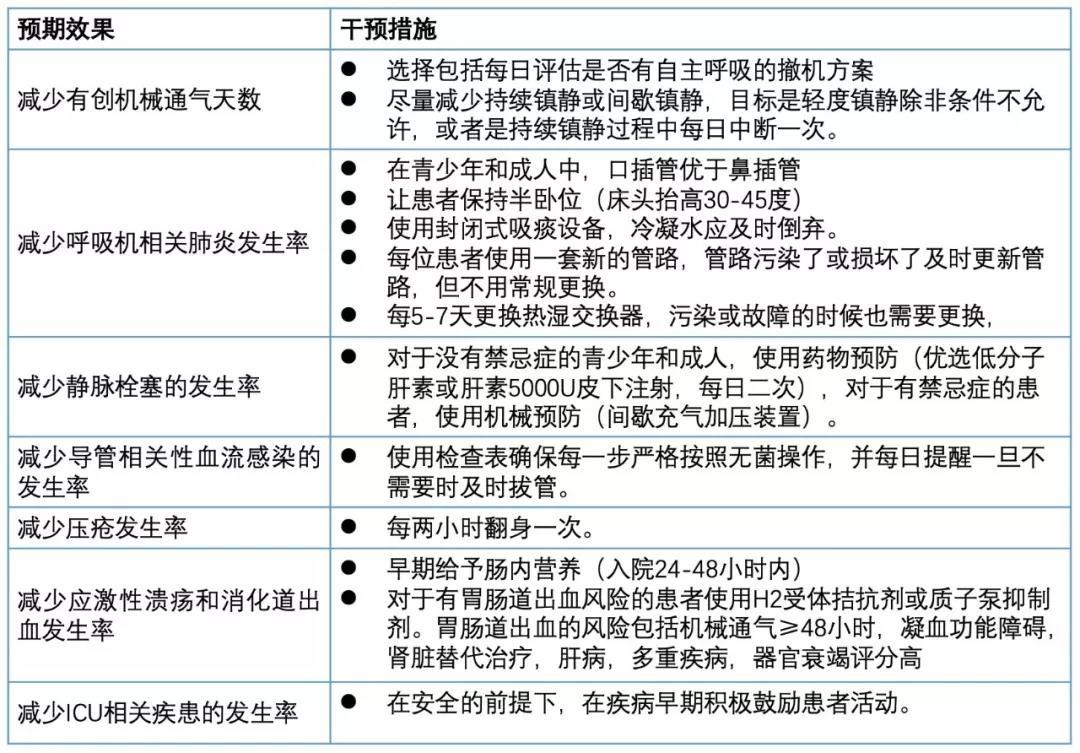 应用下列干预措施(表3)以预防重症相关的并发症。这些干预措施是基于脓毒症指南或其他有高质量证据等级指南的可行建议。