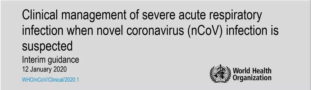 2019年12月以来,湖北省武汉市发现多起病毒性肺炎病例,经相关病毒分型检测,2020年1月7日,实验室检出一种新型冠状病毒,1月10日完成了病原核酸检测,1月12日,世界卫生组织正式将造成武汉肺炎疫情的新型冠状病毒命名为“2019新型冠状病毒(2019-nCoV)”。同时,世界卫生组织于同日发布了针对疑似新型冠状病毒感染造成严重急性呼吸道感染的临床处置指南。作为WHO发布的2019年版MERS冠状病毒感染造成严重急性呼吸道感染临床处置指南的姊妹篇,本指南是针对2019新型冠状病毒指南的第一版。