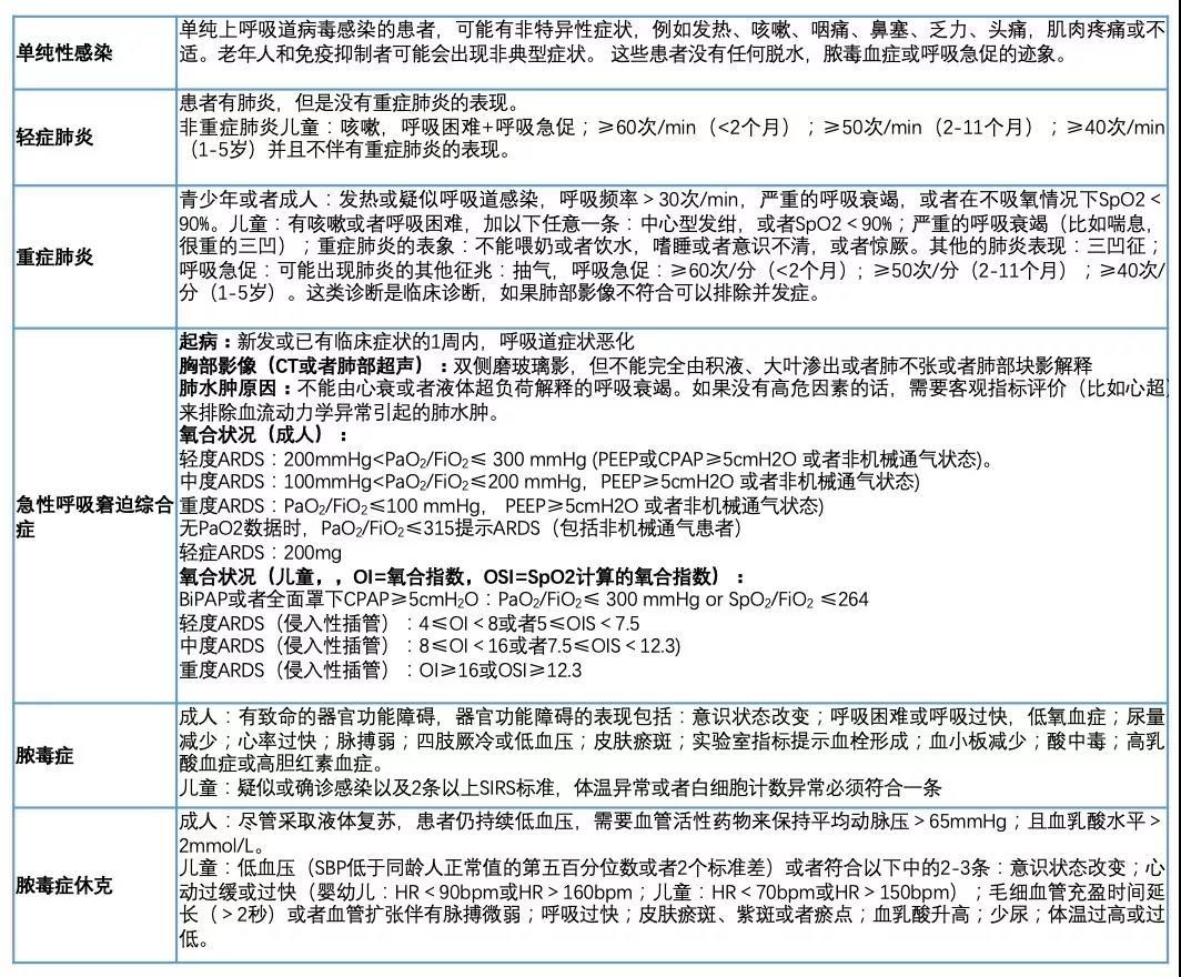 ✔分诊:在所有SARI的患者首次至医疗单位就诊(比如急诊科)时,临床医生就应对其进行识别和分类。在表1所描述的情形下,应考虑nCoV是可能的病原体。分类患者并根据疾病的严重程度启动紧急治疗。