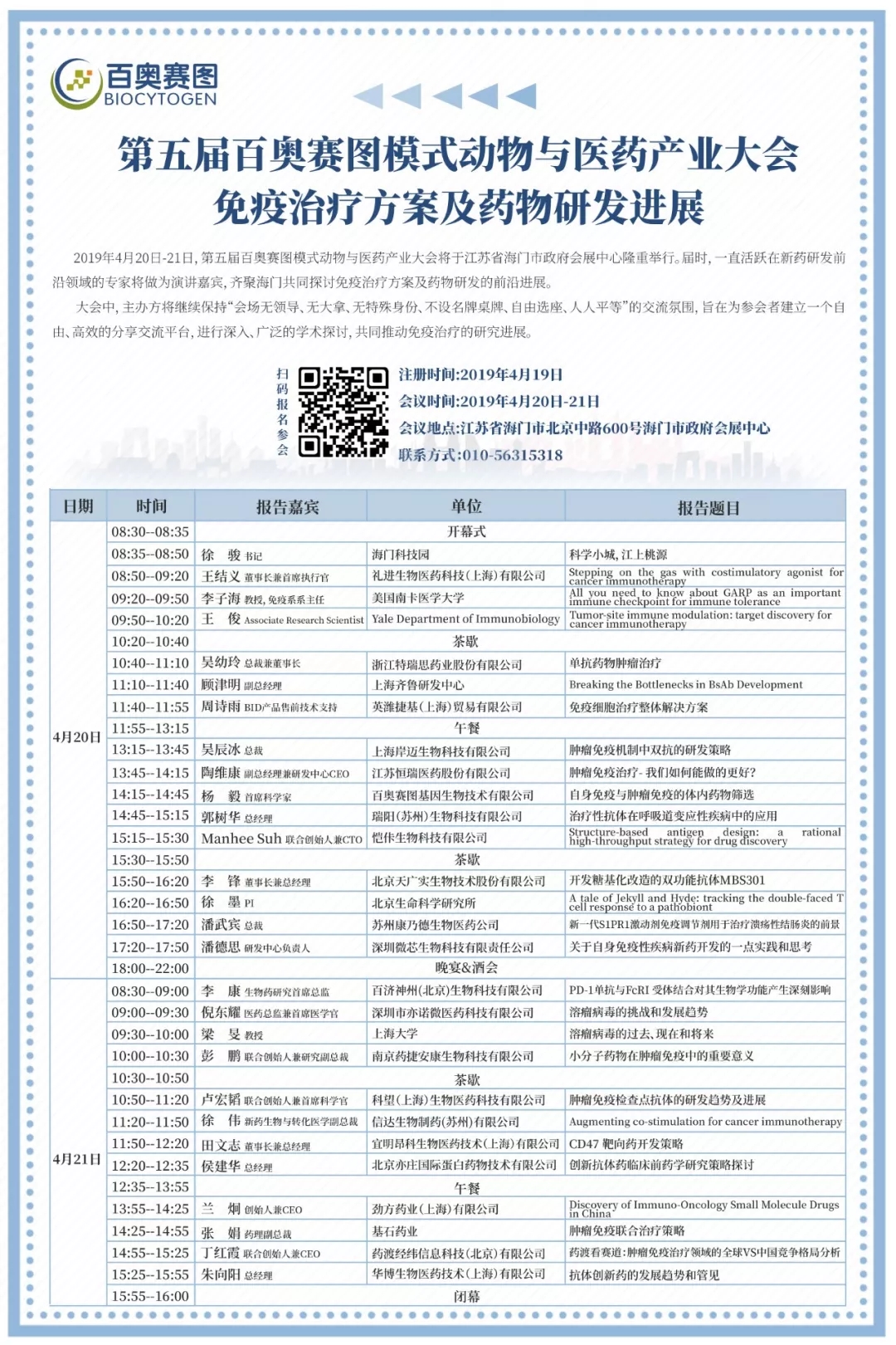 暮春四月,气淑风和,在风景秀丽的江苏海门“第五届百奥赛图模式动物与医药产业大会——免疫治疗方案及药物研发进展”于2019年4月20-21日如期举行。此次大会由百奥赛图和海门科技园共同主办、恺思俱乐部协办,得到了相关领域众多学者的支持和关注,与会人员800余人,赞助商30余家。