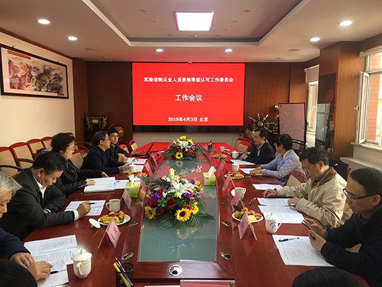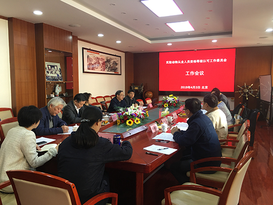 2019年4月3日,中国实验动物学会实验动物从业人员资格等级认可工作委员会在北京召开工作会议。中国农村技术开发中心贾敬敦主任、中国医学科学院药物研究所杜冠华教授、中国医学科学院医学实验动物研究所刘江宁副所长、中国疾病预防控制中心传染病预防控制所党委书记卢金星教授、复旦大学瞿涤教授、重庆医科大学谭毅教授、中国医学科学院基础医学研究所佟伟民教授、南京医科大学肖杭教授、中南大学高常青教授、中国医学科学院医学实验动物研究所魏强教授,共10位委员出席了会议。中国实验动物学会理事长秦川教授、实验动物医师工作委员会副主任委员高虹教授列席会议。