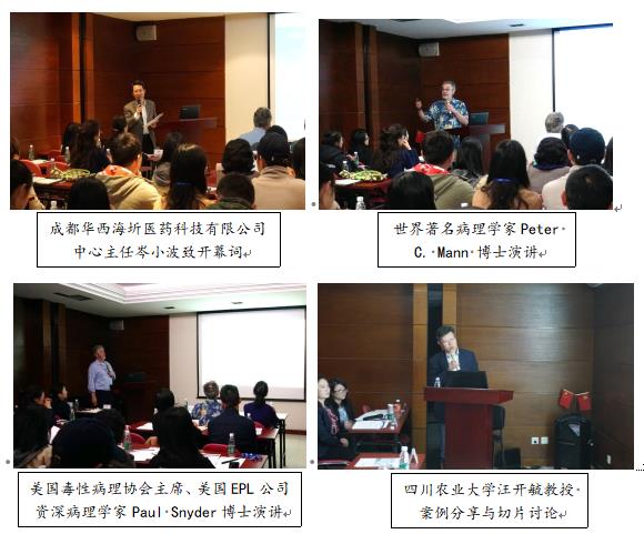 为促进西南片区毒性病理学从业者之间的学术交流,提高临床前毒性评价的水平,由中国毒理学会毒性病理学专业委员会、中国药学会药物毒性病理学专业委员会、以及华西海圻医药科技有限公司共同承办的2019年西南片区毒性病理学研讨会于2019年4月4日在成都华西海圻医药科技有限公司圆满召开!会议由华西海圻医药科技有限公司中心主任岑小波先生致开幕词。此次会议有幸邀请到了在毒性病理学届有着丰富经验,取得丰硕成果的国外专家:现任美国毒性病理协会主席、美国EPL公司资深病理学家Paul Snyder博士以及美国EPL首席病理学家Peter Mann博士,就淋巴组织中自发性与诱导性的非肿瘤性表现、啮齿动物常见肿瘤性背景病变等课题做了专业学术讲座。此外,来自成都华西海圻首席科学家张慧老师、成都华西海圻病理部部长陈珂、副部长邱爽,解剖组组长侯皇剑做了关于吸入试验中的毒性病理学检查、不良反应的判定及案例分析以及动物常见的死后改变的专题报告。四川农业大学汪开毓教授、四川省人民医院副研究员钟振东、成都扬克斯生物总经理彭西教授、四川科伦药物研究院有限公司创新中心毒理部组织病理平台项目经理曾统英老师为大家做了案例分享及切片讨论。此次会议历时一天,一共吸引了西南地区24家单位近70位毒性病理学及相关领域的专家学者共聚一堂,现场讨论气氛非常热烈,与会代表积极发言,与外籍专家充分交流。毒性病理学作为药物毒性评价的“金标准”是一门交叉学科,从业人员不仅需要具备药理学、毒理学的丰富知识,而且需要拥有丰富的临床医学、病理学诊断经验,对于我国新药研发体系的建设至关重要。各位参会者积极分享经验,相互切磋共同为西南片区毒性病理学事业的发展做出一份自己的贡献。