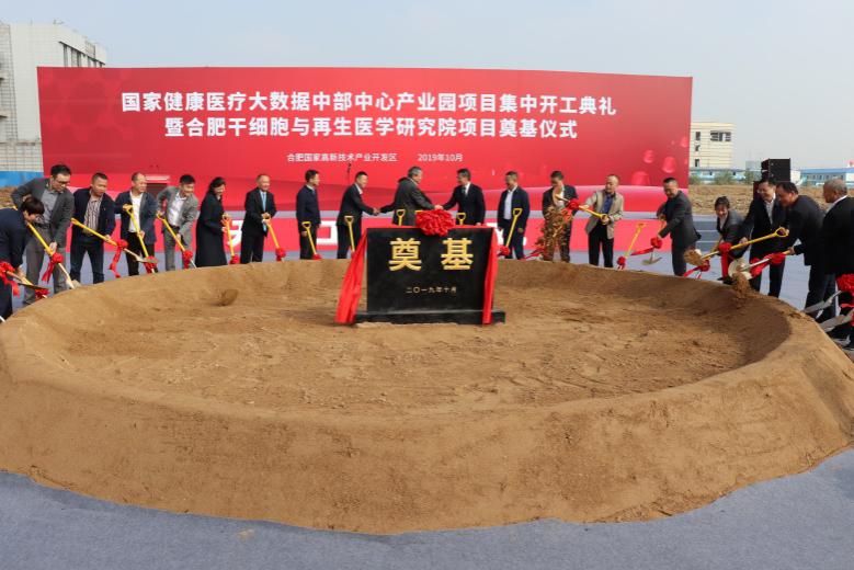 10月23日上午,国家健康医疗大数据中部中心产业园项目集中开工典礼暨合肥干细胞与再生医学研究院项目奠基仪式在合肥高新区举办。中科院广州健康院院长陈新文,中科院广州健康院学术院长裴端卿,合肥市副市长王文松,合肥高新区工委书记、管委会主任宋道军出席仪式并讲话,安徽省经信厅党组成员、副厅长王灯明出席仪式并宣布项目开工。合肥高新区工委委员、管委会副主任刘登银主持仪式。省、市相关部门负责人出席仪式。宋道军在讲话中指出,合肥高新区始终将健康医疗产业作为园区发展的重中之重,要依托省级生物医药战略新基地发展基础,建设好国家健康医疗大数据中部中心。